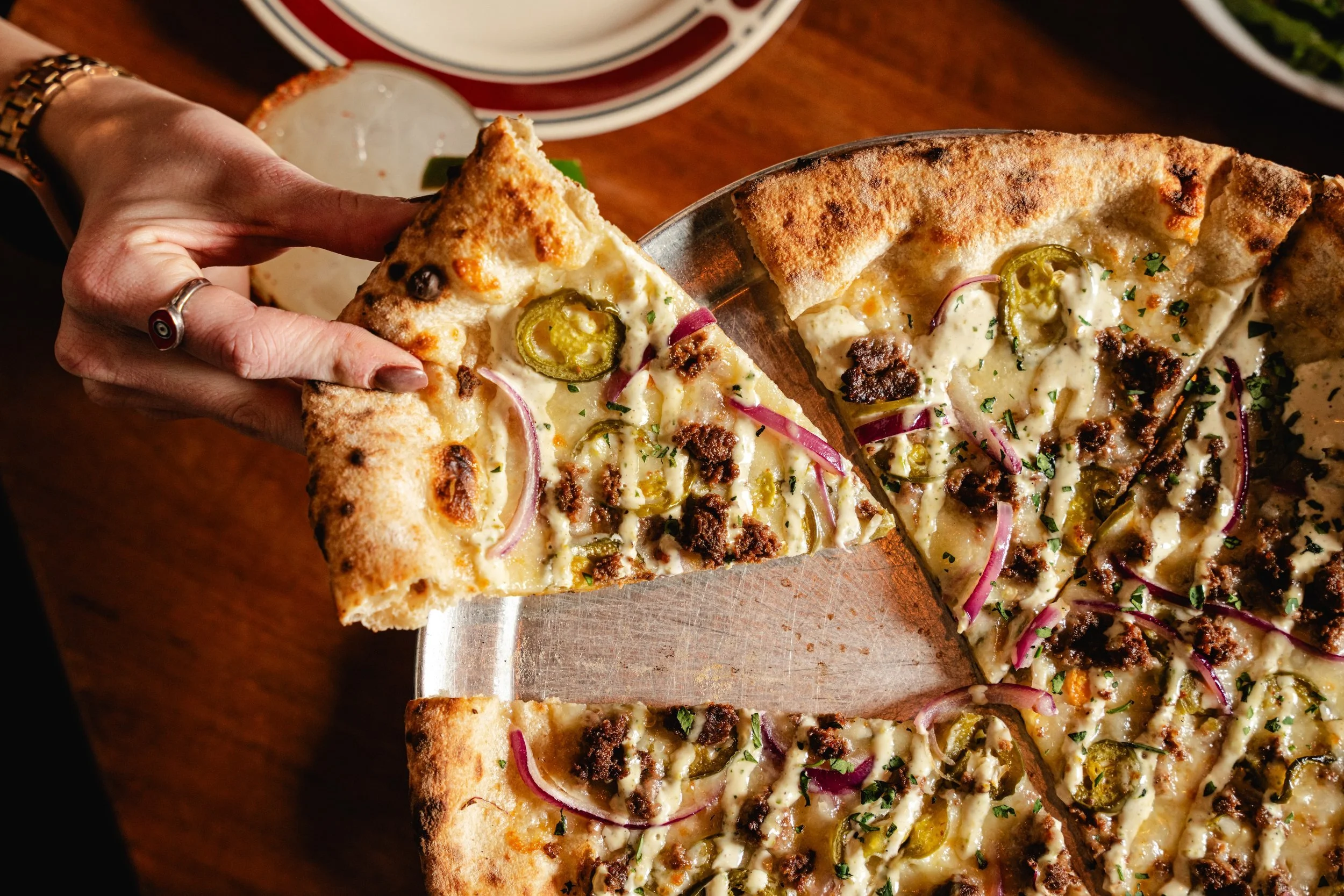 tomato sauce, shredded mozzarella, caciocavallo, grana padano, cupping pepperoni, pickled jalapeño, honey, sicilian oregano